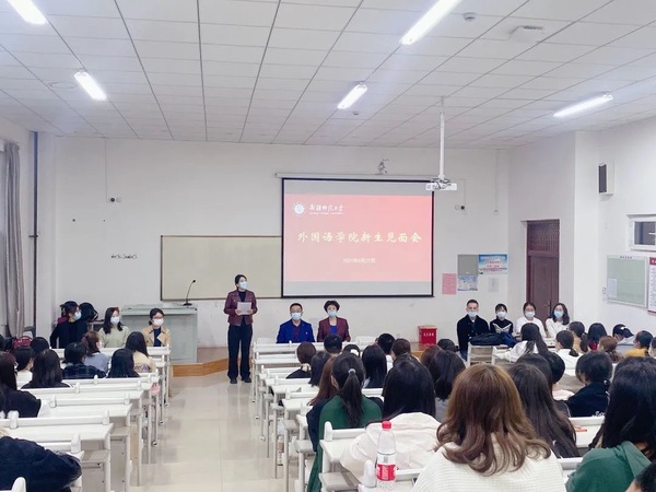 学院党委书记刘蓉、副书记刘汉成对2021级新生表示热烈欢迎。刘蓉书记从课程建设、党团建设、班级宿舍文化建设方面介绍了学院“一体化”外语学科育人的具体举措与成效,并激励新生做好大学专业成长规划、构建爱国情怀、增强担当精神和集体责任感,做有文化涵养、有情怀温度、有良好道德品行的高素质外语人才。刘汉成副书记从“学会学习、学会做事、学会共处、学会做人”四个方面,向新生提出要求,希望新生珍惜短暂的校园时光,树立明确目标,勇于实践,在外院实学院党委书记刘蓉、副书记刘汉成对2021级新生表示热烈欢迎。刘蓉书记从课程建设、党团建设、班级宿舍文化建设方面介绍了学院“一体化”外语学科育人的具体举措与成效,并激励新生做好大学专业成长规划、构建爱国情怀、增强担当精神和集体责任感,做有文化涵养、有情怀温度、有良好道德品行的高素质外语人才。刘汉成副书记从“学会学习、学会做事、学会共处、学会做人”四个方面,向新生提出要求,希望新生珍惜短暂的校园时光,树立明确目标,勇于实践,在外院实现自己的青春理想。