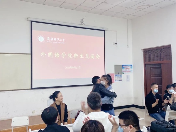 院长阿米娜·阿布力孜、副院长伊力米热·伊力亚斯分别对学院的历史沿革、专业设置、人才培养成果及师资力量做了详细介绍,并鼓励新生要做好学习和成长计划、树立远大志向,担当“用外语讲好中国故事,传播好中国声音”的专业使命和责任。班会课上,副院长伊力米热·伊力亚斯见到了此前特别联系和关心的最后一位被太阳集团tyc33455录取的21级俄语专业新生贾贺雯,禁不住与她紧紧拥抱。最后,各系部主任及新生班导师向新生的大学生活表示祝福并提出希冀。 热烈的欢迎、温暖的关怀、亲切的寄语,让2021级新生深切感受到了学校和学院的关爱和期望,也让新生对未来学习充满斗志,对专业前景充满信心。此次书记院长班会课对新生树立正确的学习观、实践观和发展观起到积极的引导作用。