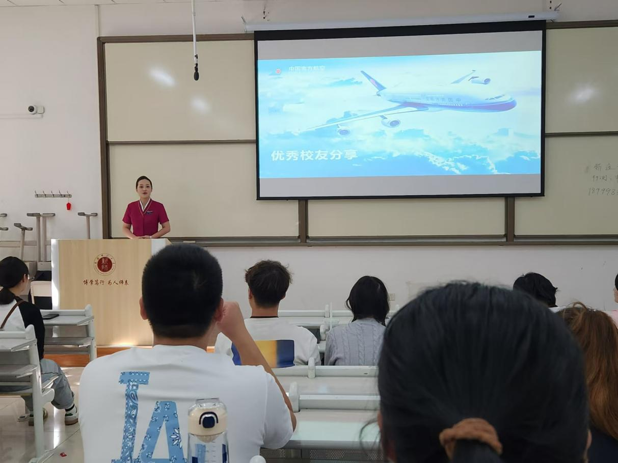 随后,中国南方航空公司新疆分公司招聘组播放《中国南方航空公司企业宣传片》,杨满意专员从认识民航业、走进南航、南航新疆分公司简介、职业介绍、总体薪酬及津贴补贴、面试程序、招聘条件、招聘要求、报名方式等方面进行了详细的介绍,特别介绍了“明珠之蓝”外语特长乘务员招录项目的要求及条件,同时,针对毕业生提出的薪资福利、地勤跟岗、工作地点、职业发展等问题进行答疑解惑。历史与社会学学院16届校友商孟婕进行了入职8年职业体验分享。