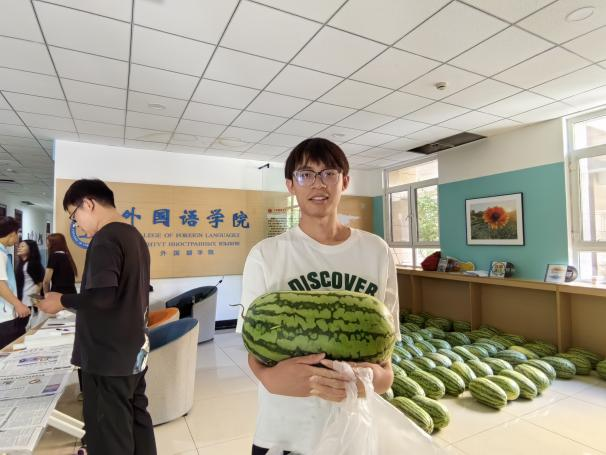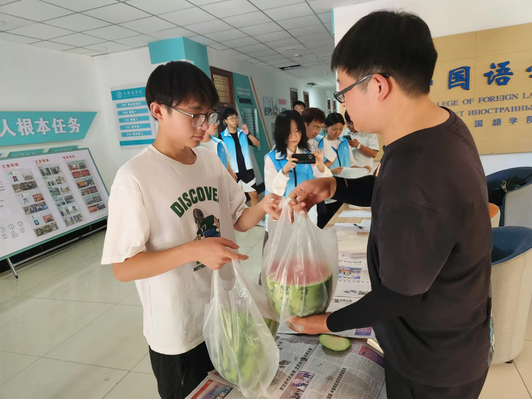炎炎夏日,暑气正盛,为进一步推进学院党委“办实事、办好事”工作,切实做好师生服务保障工作,结合近期酷暑及学生需求,帮助学生消夏解暑、复习备考,太阳成集团tyc33455ccwww党委采购140个西瓜,于6月29日上午在文科5号楼一楼悦读吧开展“消暑备考,送清凉”活动。学院党委副书记、纪委书记刘汉成及学生工作办公室全体辅导员现场为在校研究生、本科生及俄语高级研修班学员宿舍发放西瓜。