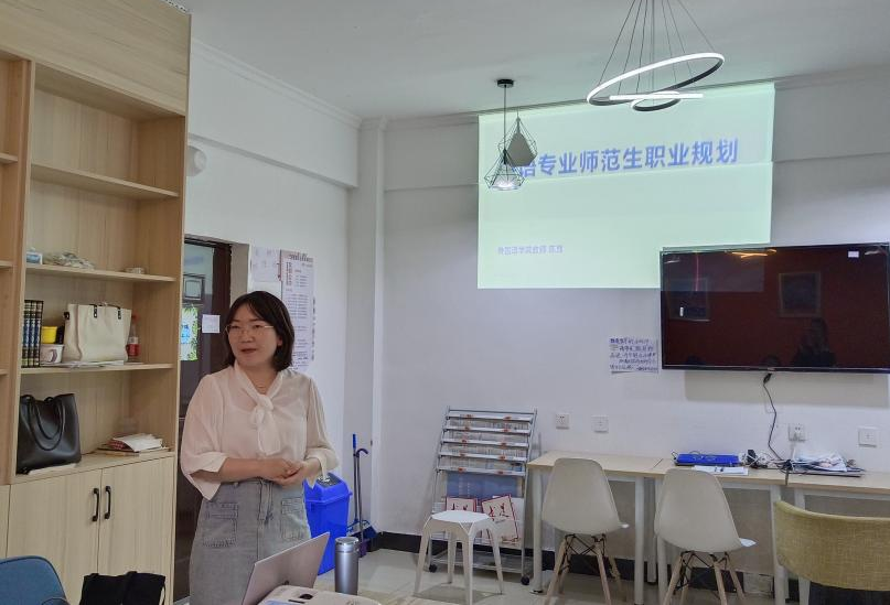 陈茸老师以“英语专业师范生职业规划”为题,围绕英语专业师范生的就业困境、就业现状、职业规划必要性及思路、就业方向以及职业规划建议五个方面进行了深入讲解,聚焦英语专业学习、专业实践、人职匹配、职业规划等四个方面,结合自身丰富的教育经验和深厚的专业素养,通过大量的案例和数据向同学们展示了当前英语专业师范生面临的就业形势和挑战,同时从职业目标和发展方向、适应职场环境、提高就业竞争力等多方面向同学们阐释了提早进行职业规划的必要性,并从多角度为同学们提供了职业规划的指导和建议,鼓励同学们深入了解自己的兴趣、优势和不足,结合个人特质,保持对英语的热爱和学习,不断提高英语水平,学习其他领域的知识,拓宽自己的知识面。
