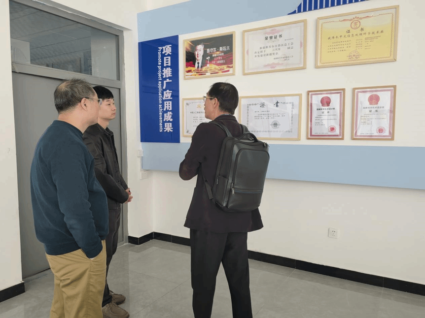 座谈会后,一行参观了新疆大学计算机科学与技术学院部分科研成果,包括:多语言多模态舆情监测和预警系统、多语言系统演示、生物医学信号智能处理与医工融合、国家通用语言学校平台、多层级频域增强的图像表征与检索、智能施灌技术及装备研发与应用等。