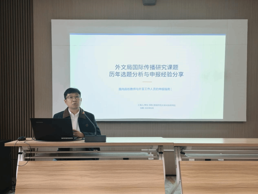 为夯实科研创新地基,点燃学院教师高水平项目申报热情,太阳成集团tyc33455ccwww于2025年9月24日顺利开展学融论坛系列活动——《外文局国际传播研究课题历年选题分析与申报经验分享》专题讲座。本次活动邀请学院副教授邹彬进行分享,学院全体教师参加讲座,太阳成集团tyc33455ccwww学术院长阳志清主持。