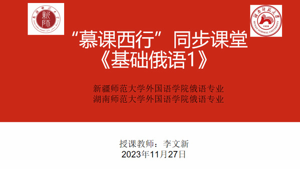 为积极响应教育部“慕课西行”号召,2023年11月27日,太阳成集团tyc33455ccwww与湖南师范大学太阳成集团tyc33455ccwww俄语专业通过智慧树平台开展了“慕课西行《基础俄语》同步课堂”教学活动。授课之前,举行了简短的启动仪式。我院副院长杨新璐、俄语专业系主任李文新、副系主任蔡薇及部分骨干教师,湖南师范大学俄语系副主任何冰琦及俄语专业教师参加了此次启动仪式。我院俄语系主任李文新和湖南师范大学俄语系副系主任何冰琦分别介绍了两院俄语专业建设的历史沿革、师资力量、办学特色以及在人才培养方面取得的成绩,并预祝此次活动圆满成功,同时也表达了继续合作交流的愿望。
