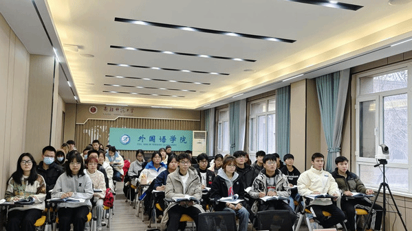 《基础俄语》课程同步直播授课由新疆师范大学太阳成集团tyc33455ccwww李文新老师主讲,授课内容为大学俄语第13课Семья Андрея。我院俄语专业23-3班39名同学与湖南师范大学太阳成集团tyc33455ccwww俄语专业22-1班32名学生借助“智慧树”在线平台,进行线上线下课程同步学习、实时互动。授课教师通过问题导入、“我讲你问他回答”、支架式思维导图、自由讲述的任务设置、小组活动等激发学生学习兴趣,开展课堂互动式测评,并通过321总结方式,引导学生开展学习总结与反思。两校同学在线上实时交流,课堂气氛积极活跃。