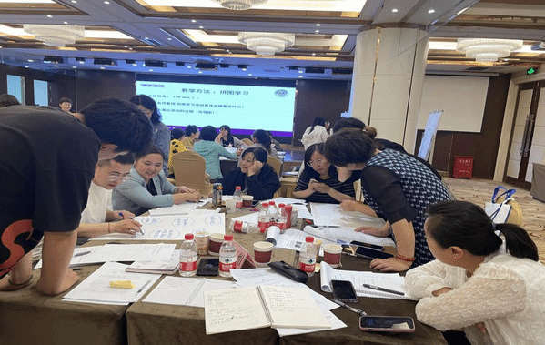 在教学培训过程中,李霞教授针对当下课堂教学存在的问题,以“O-AMAS有效教学模型”为基础,创设特定的教学情境,运用丰富的教学活动,采用体验式教学法,面向参训教师开展小组教学,借助丰富的活动形式引导教师深入沟通,共同协作,探究学习,达到“从做中学”的目标。老师们分组积极配合主讲团队开展小组活动,在活动中一起探讨、相互学习。