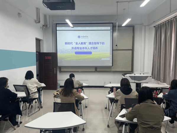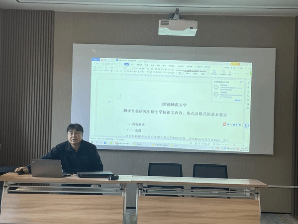 翻译专业开展了“翻译实践报告的写作模式与撰写指导”,学院翻译硕士专业学术带头人李英军为翻译专业教师讲解了本科学段翻译实践报告的国内研究现状,强调了目前师生中对翻译实践报告认识的几个误区,举例说明了翻译实践报告中理论与实践的关系,并提供了翻译实践报告撰写模板,助力翻译专业教师指导2020级毕业班学生撰写翻译实践报告。