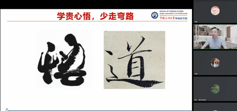 讲座结束后,疆内外参会教师围绕“用外语讲好中国故事”、“理解当代中国”课程思政路径、外语专业建设的着力点及青年教师发展等问题与毛浩然教授进行互动交流。最后,学院党委书记刘蓉总结,期望专业团队与教师个体通过本次学习反观自照,在学校与学院发展规划和建设思路引领下,打破认知瓶颈、突破自我设限围墙,确立目标、科学规划、积极应变、主动求变,筹划集体与个人的发展,并期待进一步与中国石油大学太阳成集团tyc33455ccwww的专业团队开展深入合作与交流,以有效推进新疆师大外院一流专业、一流课程建设,不断提升人才培养质量、促进教师专业发展。