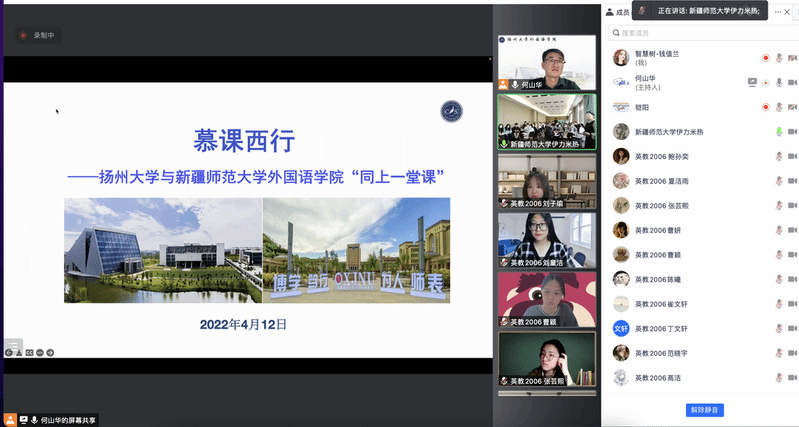 这次直播讲授,也是华东地区首次有外语类专业参与慕课西行项目。据扬州大学教务处处长王承堂介绍,该校目前有32个国家一流本科专业建设点,本次参与慕课西行的英语(师范)专业已通过教育部二级师范专业认证,探索异地课堂直播,既是扬州大学虚拟教研室建设的一部分,也是教育部新文科研究与改革实践项目涉外复合型人才协同培养创新与实践的一部分。