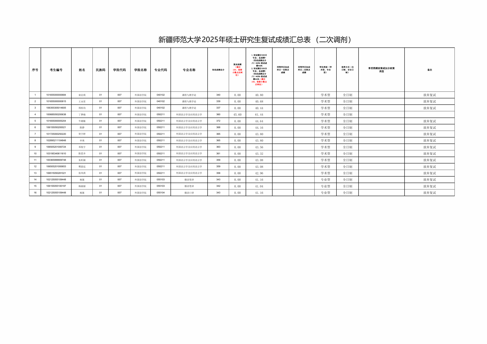 太阳成集团tyc33455ccwww2025年硕士研究生二批次调剂招生复试成绩公示