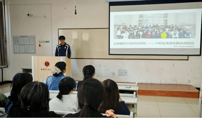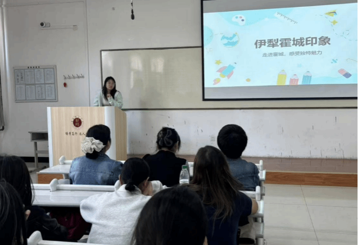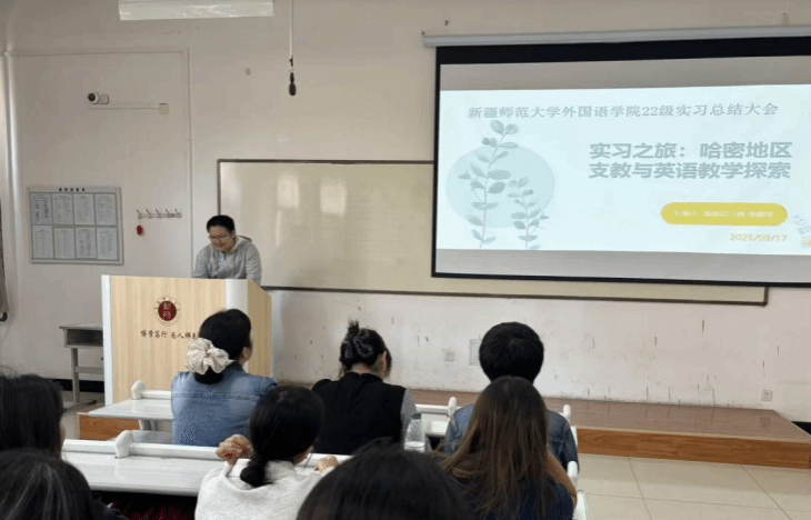 支教汇报的同学中,谢宇恒在巴音郭楞蒙古自治州的支教经历充满了温暖与感动。他讲述了当地孩子们对知识的渴望,以及自己如何克服语言交流等小障碍,用英语为孩子们打开一扇看世界的小窗户,看到孩子们从最初的羞涩不敢开口,到后来能主动用简单英语与自己交流,他的声音里满是欣慰。马寓菲在博尔塔拉蒙古自治州的支教生活同样精彩,她分享了和当地老师共同备课、打磨英语课程的过程,在这个过程中,她不仅提升了教学技能,更感受到了团队协作的力量。李煜洋在哈密地区的支教时光,让他深刻体会到了教师职业的责任感,他用心准备每一堂英语课,希望能给当地学生带来不一样的英语学习体验。李雅茹在伊犁哈萨克自治州霍城县的支教,充满了文化交融的美好,她将英语教学与当地特色文化相结合,让英语学习变得更加生动有趣。黄美惠在克拉玛依市的支教,着重分享了如何激发学生学习英语的兴趣,通过开展英语小活动,让课堂氛围变得活跃起来。曹景婷在伊犁哈萨克自治州特克斯县的支教,讲述了自己在教学方法上的探索,如何根据学生的实际情况调整教学策略,以达到更好的教学效果。
