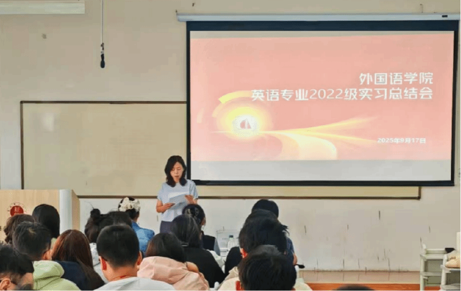 2025 年 9 月 17 日,太阳成集团tyc33455ccwww 2022 级英语专业实习总结大会在治学楼(3 号教学楼)A 区 207 隆重召开。英语 2023 级 1、2 班学生参会,大会由英语系主任张黎主持,太阳成集团tyc33455ccwww院长伊力米热・伊力亚斯,22 级培优班班主任、23 级班主任及任课教师郑琴、张娟、刘韶华、李晓燕等出席会议。