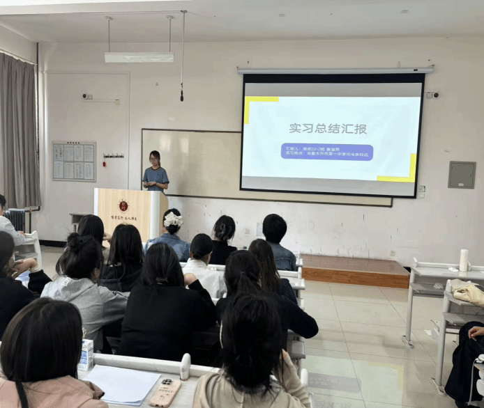 培优班实习汇报的同学也各有精彩。崔振宇在乌鲁木齐市一中(绿谷校区)的实习,感受到了名校浓厚的学术氛围与严谨的教学作风,他详细介绍了自己观摩优秀英语教师授课的收获,从教学设计到课堂管理,都让他受益匪浅。鲁溢芳在乌鲁木齐市一中(河马泉校区)的实习,分享了参与学校英语教研活动的经历,在与资深教师的交流中,她对英语教学有了更深入的理解。宋佳妮在乌鲁木齐市一中(北门校区)的实习,着重讲述了自己协助指导教师批改作业、与学生谈心的过程,这让她对学生的学习情况与心理状态有了更细致的把握。叶文玉在太阳集团tyc33455附属中学的实习,分享了自己尝试进行英语公开课教学的经历,从备课的紧张到课堂上的从容,再到课后听取指导教师的点评,每一个环节都让她成长不少。