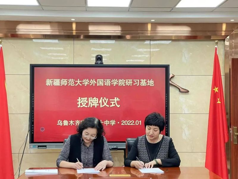 与乌鲁木齐市第七十中学副校长朱迎春签署合作协议